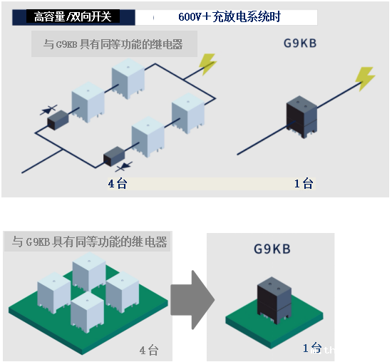 ● 在高电压600V的系统上,可通过1台继电器实现充放电时直流电流的开关控制和安全阻断。