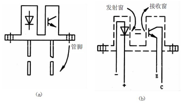 图1 示出透射、隔离式光电开关的外形及内部构造。光电开关的用途极广,可构成液位、转速、流量传感器,还适用于自动售货机、保安装置、通信设备中。