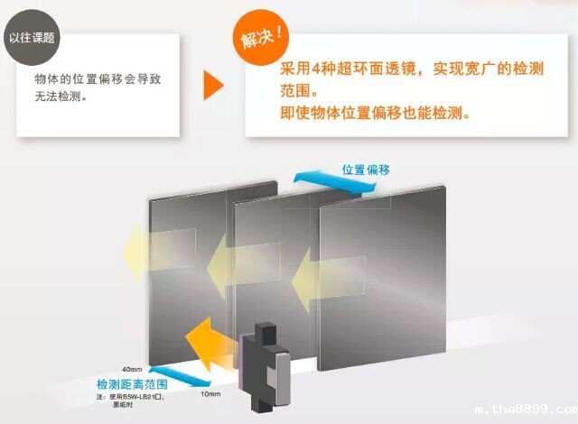 二、距离的稳定性:检测范围广,因此耐物体位置偏移强