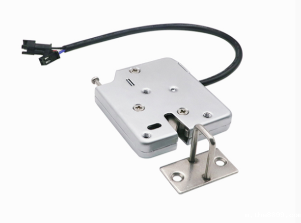 智能快递柜电控锁,有12V与24V两种,体积小,重量轻,不锈钢材质,外观美观结实,3颗M4螺钉固定孔。4条出线,2条为线圈吸合通断线,另外两条为状态信号线。