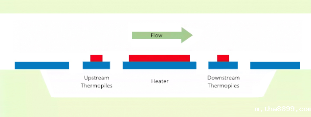 当气体(介质)不流动时,对称的两个温度传感器就会检测到相同的温度。当气体流动时,比如从左向右流动,此时传感器的温度读数就是右边高于左边。由于温差与流速成正比,我们通过测量两个温度传感器的温差来测量差压量值。