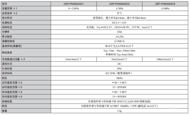 D6F系列的电源电压为3.3 V,输出是I2C。以数字方式执行的内部线性化和温度补偿,可使产品具有卓越的精度,出色的 灵敏度和最低的温度依赖性。