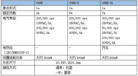 高接点负载 G5NB-E(5A 100Kops), G5NB-EL(7A 50Kops)