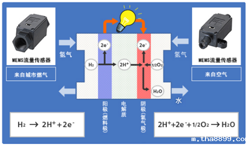 能大限度发挥燃料电池发电效率的高精度MEMS流量传感器,应用气体流量测试技术检测仅为1毫米/秒的气体流量。作为减轻环境负担的新一代燃料电池系统零部件,MEMS流量传感器发挥着重要的作用。 燃料电池的原理就是将城市燃气中含有的氢气与氧气混合在一起,产生化学反应进行发电。为了尽量提高发电效率,需要使氢气与氧气在合适的混合比率的情况下进行燃烧。为了达到这一目的,需要发挥MEMS流量传感器的高精度测试技术。欧姆龙MEMS流量传感器采用超细微加工技术,开发了装配有流速检测元件的MEMS流量传感器。拥有引以为傲的高级别灵敏度,甚至是1毫米/秒的气体流速变化也能精确检测。随着燃料电池的普及,对欧姆龙小型、高性能MEMS流量传感器用途的期待也不断高涨。