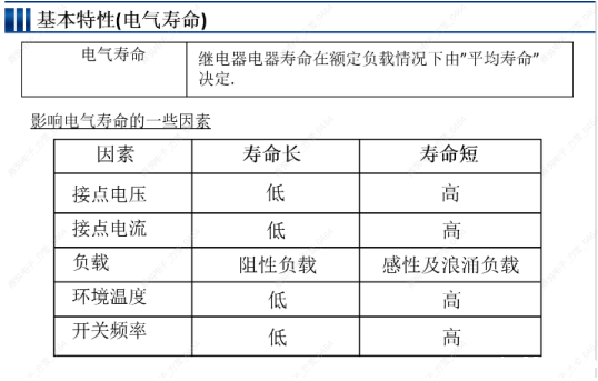 电气寿命(耐久度):寿命要求(要求继电器的动作次数)开关频率(1s On/1s Off)