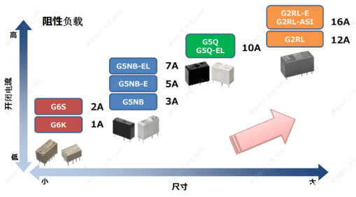 一般来讲,接点容量越大,继电器的尺寸也会越大。但是欧姆龙能在保持产品大小的同时做出一系列高容量的继电器。