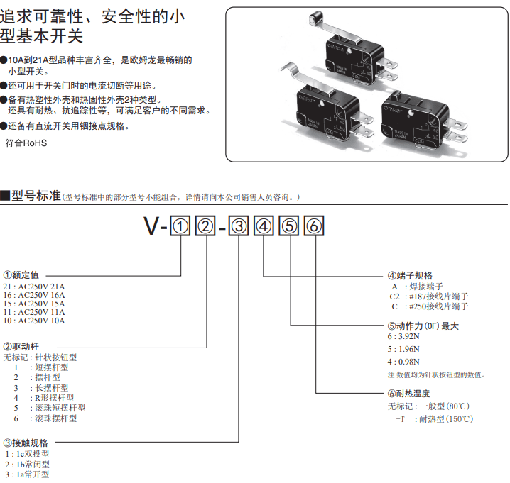 商用咖啡机主要有半自动式和全自动式用到欧姆龙V系列微动开关 。 V系列作用:一、检测杯子位置以及运行轨道,二、检测杯子落盖是否到位 。 欧姆龙微动开关V系列凭借高品质、安全性、可靠性赢得广大厂家信任