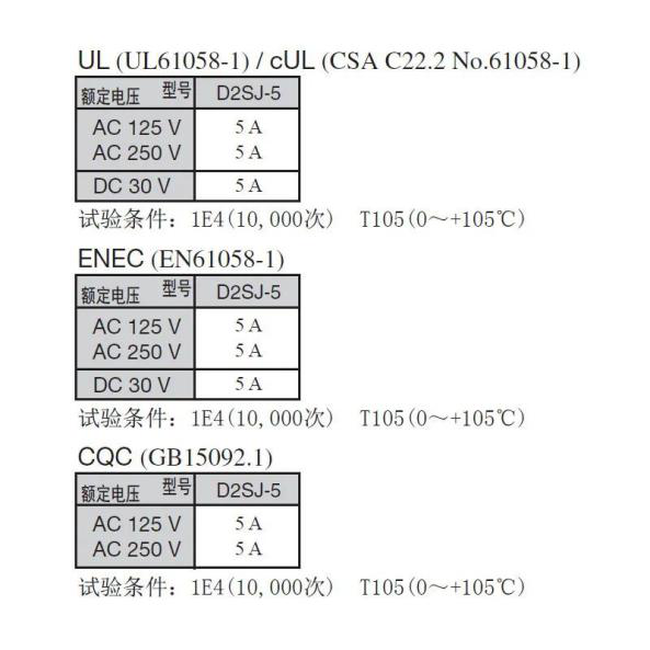 对欧姆龙而言,安全向来重要。欧姆龙D2SJ的额定电压、额定电流均达到中国CQC、北美UL和欧洲ENEC的安全标准,并全面落实中国、北美和欧洲GB15092.1、UL61058-1、EN61058-1要求的指标。值得一提的是欧姆龙D2SJ在DC 500V时,绝缘电阻可达100MΩ以上,电阻阻值越大,流过它的电流越小,故使用起来也就越安全。