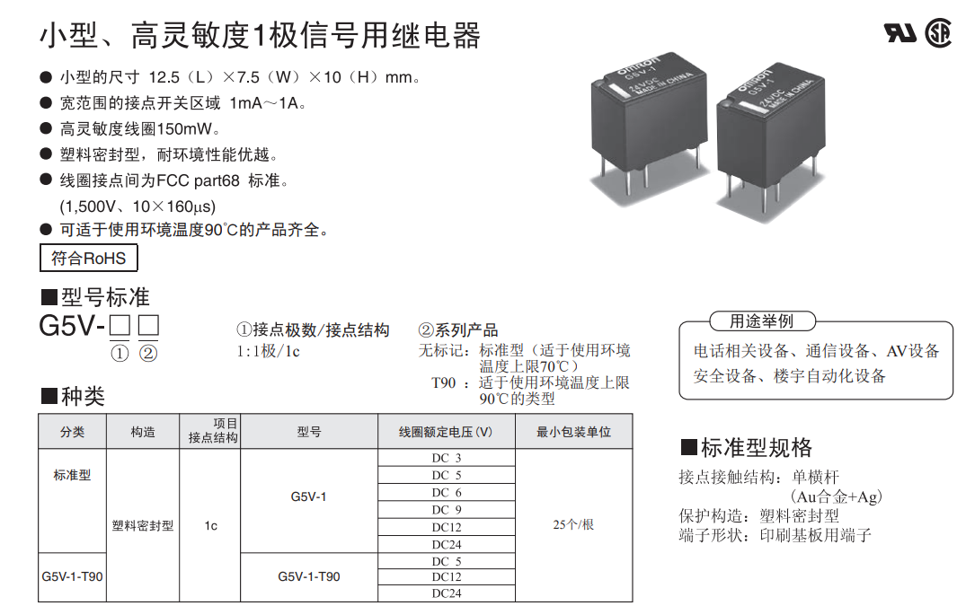 欧姆龙产品中的G5V-1 DC12 BY继电器能够完美的实现特定的一些高低压开关柜所需达成的信号切换等要求以及功能。另外欧姆龙更多的继电器如:G5V-2系列、G6S系列可以实现设备动作的完美控制、线路保护等功能!