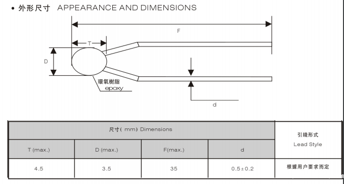 高精度玻封NTC热敏电阻 BWF153J3950FA-A