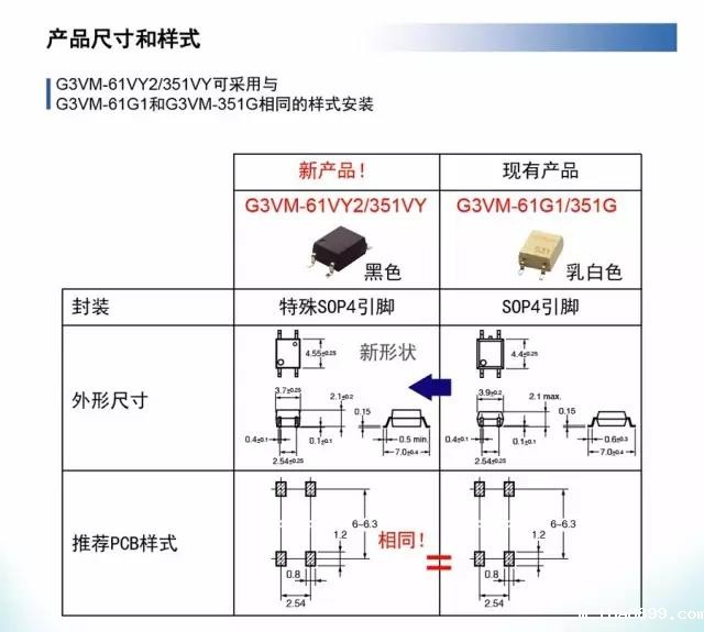 畅销型号G3VM-61G1和G3VM-351G的升级版本。