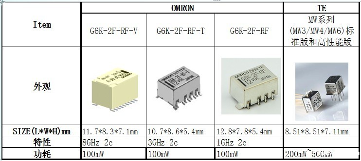 而欧姆龙新出的G6K-2F-RF-V 8Ghz将在特性及性能方面都有明显优势;