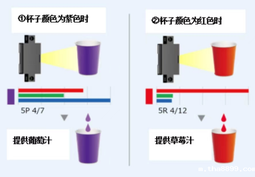 欧姆龙B5WC颜色传感器,不错过颜色的差异和变化,根据颜色传感器的颜色执行信号输出,由上可设定基于检测物体颜色信息的设备动作。识别杯子的颜色,可提供所设饮料,为设备的多功能化、业务的自动化贡献。此外,还可削减因按钮操作错误导致的饮料报废损失。通过颜色检测到物体,有助于设备的稳定工作。