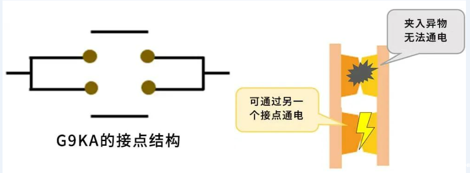欧姆龙G9KA继电器低接触电阻0.2mΩ实现这个目标所面临的重大课题之一便是接点上的异物,接点上一旦存在异物则会妨碍电流的通道,从而导致低电阻升高。