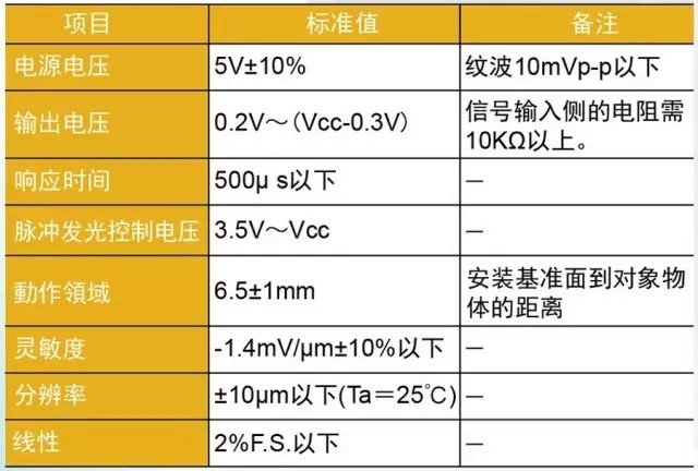 1、特征: 通过将计算机处理电路内部ASIC化,使控制更加容易。 分辨率±10μm。 动作范围6.5±1mm。 利用除法运算,抗检测物反射率变化的性能好。