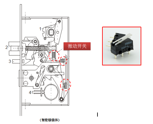 智能锁是现在市场需求量非常大的一款智能产品,而且市场上的智能锁种类繁多,价格不一,下面为大家介绍一下智能锁中的一个起着灵魂作用的零件——智能锁微动开关。微动开关在智能锁里,做锁舌的位置检测,用以告知IC目前锁的状态——开锁或关锁。