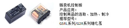 (1)产品推广一:售货机控制板,推荐使用欧姆龙功率类继电器,主要实现贩卖机控制商品的选取、加热、制冷等功能。