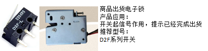 (3)产品推广三:商品出货电子锁,推荐使用欧姆龙小型微动开关,主要是在出货完成后给信号主机,体积已完成出货: