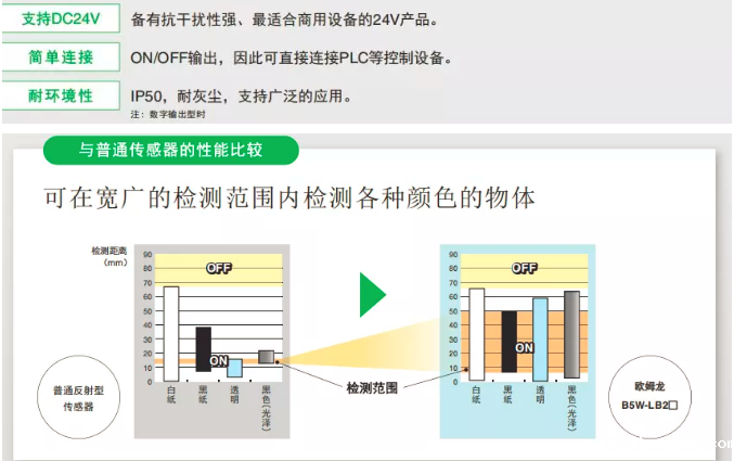 现如今,限定反射式光电传感器的应用,已融入到了我们的生活中,例如打印机、自动咖啡机、点钞机等。都广泛运用到了此技术,为了让更多的人享受到科技带来的便捷,欧姆龙强势推出B5W-LB系列 限定反射式光电传感器,不仅支持DC24V的设备内置用,镜面、黑色、透明物体也都会检测出来。