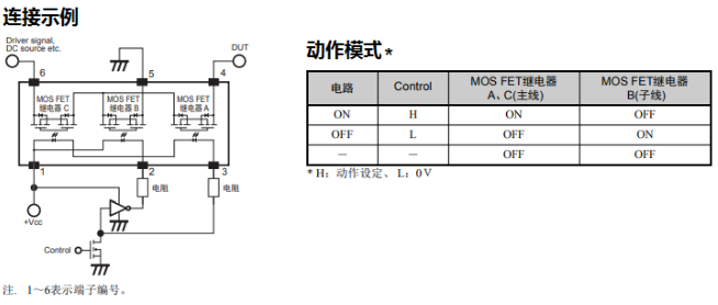 由三个MOS FET继电器组成1组常开触点(SPST-NO) + T开关功能。