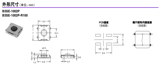 6mm方型超薄型密封表面安装轻触开关具有高耐久性。