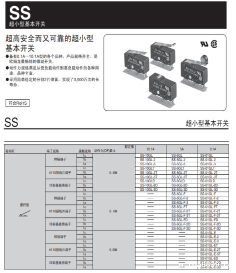 破壁料理机由主机、杯体以及配用附件组成。采用杯体和主机分离的设计方式。主机包括高速串激电机、传动器件、安全开关组件、电机安装支架、控制按键、外观壳体、以及散热系统组成。其中,安全开关组件设置有微动开关,通过杯体的触动杆触发微动开关使机器工作。主机没有放置杯体的情况下产品不工作,起到了保护作用。杯体由传动器件、刀座组、杯体、杯盖、投料盖以及密封件组成。此时提到的安全开关组件,为了让消费使用更放心,则须大大的提高产品的安全性,建议选用元气件龙头品牌欧姆龙微动开关SS-5GL系列,超高安全而又可靠的超小型基本开关。相关产品信息如下。