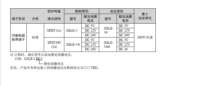 G5LE 印刷基板用功率继电器