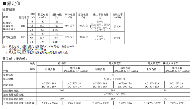 10A·15A负载开闭的扁平型功率继电器 适用于家电设备的加热器开闭、工业设备的输出 实现高11mm、宽22mm、长16mm的小型化 备有消耗电力150mW的高灵敏度系列 取得UL、CSA规格 备有塑料密封型 备有Tab端子型(负载连接端子#187)