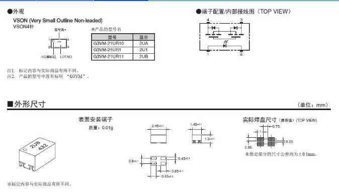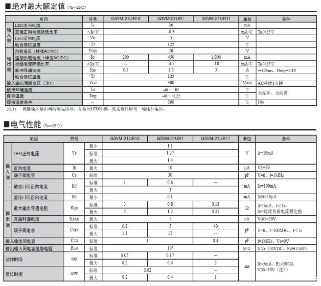 G3VM-21UR11/21UR10 光耦继电器