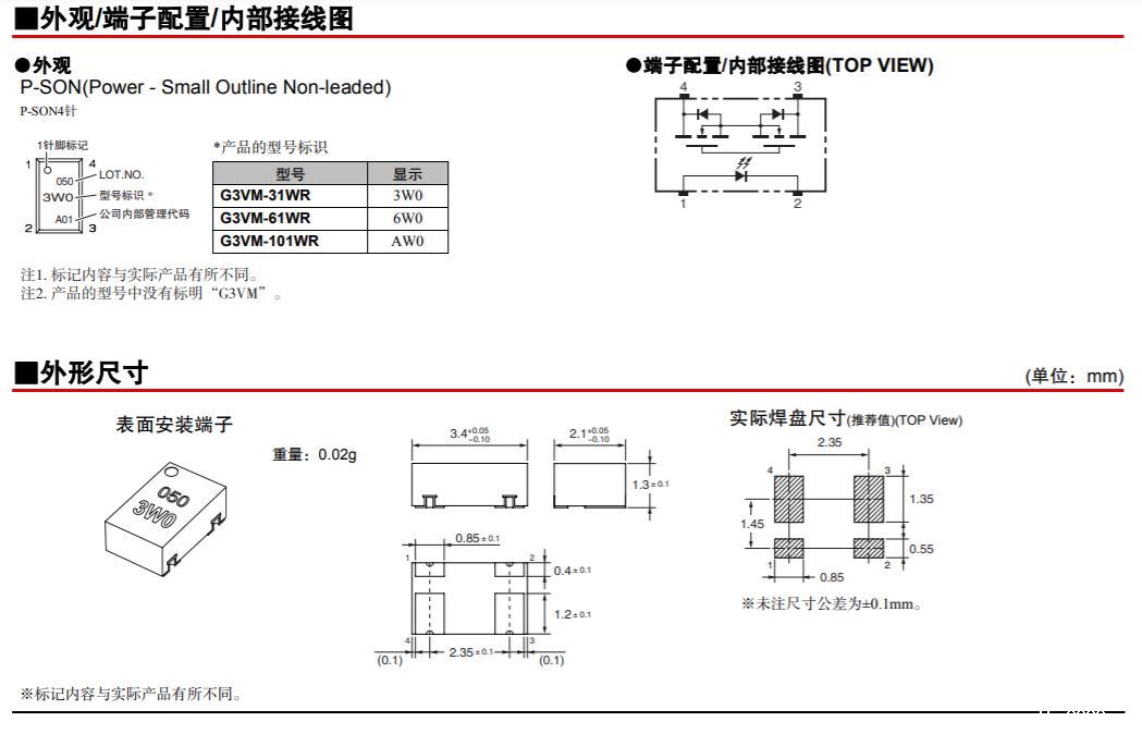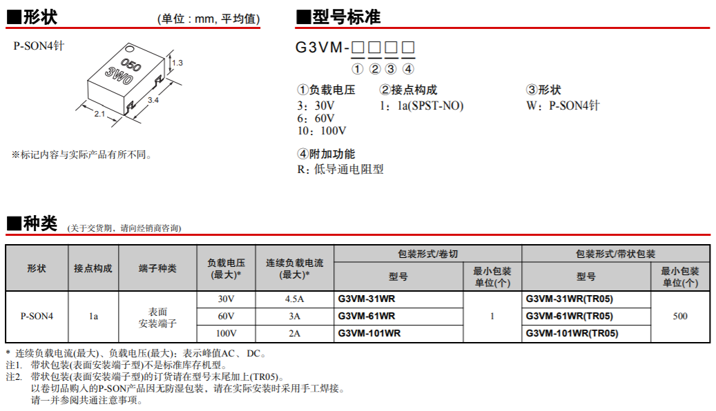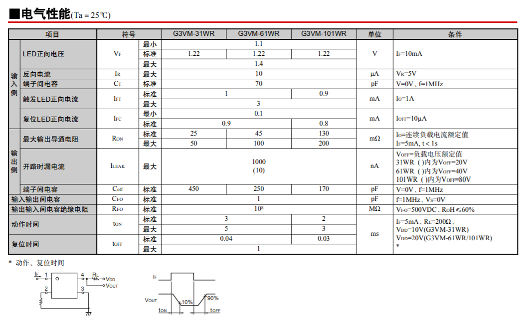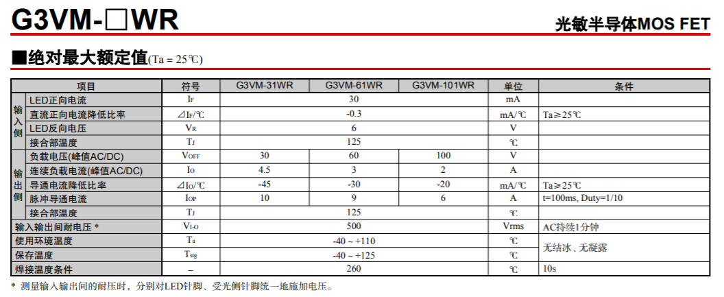 G3VM-31/61/101WR 光敏半导体MOS FET