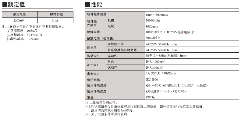 欧姆龙微动开关