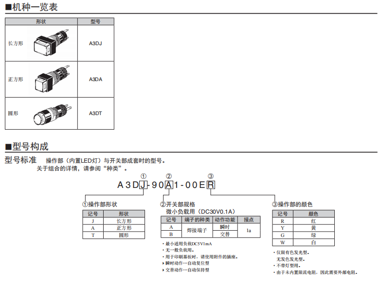 A3C系列按钮欧姆龙开关(带灯、不带灯)(圆型φ12)