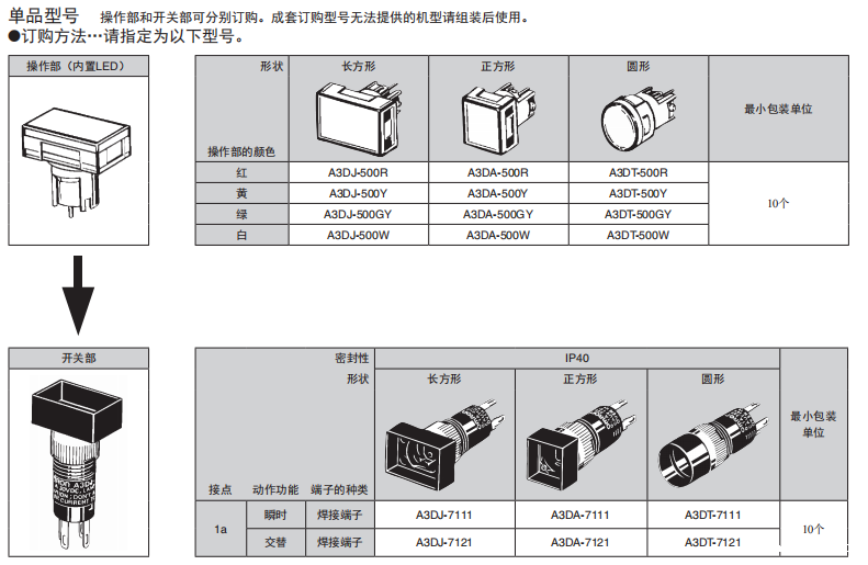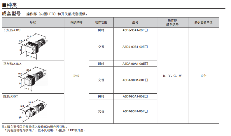 A16□-P 按钮欧姆龙开关(分离式)(带灯·不带灯)(φ16)