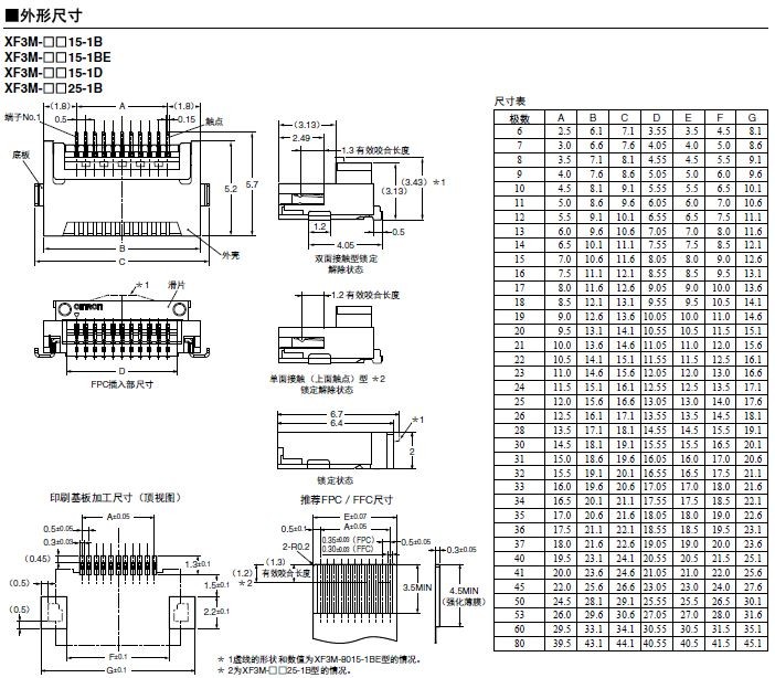 XF3M 旋转后锁结构(端子间距0.5mm、1.0mm、双面触点类型)