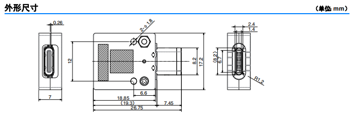I/O 接口为 USB Type-C 接口的 电子设备检查用插座 • 装备 USB Type-C 3.1 标准接口 (JAE制造 型号:DX07B024JJ3LR1600) • 可以安装至设备等的安装孔 (Ø1.8)