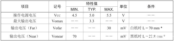 电气及光学特性 (Ta=25℃、 Vcc=5.0V)