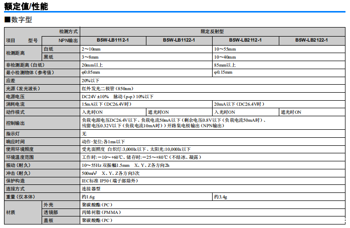 黑色、透明物体反射型传感器B5W-LB1112-1