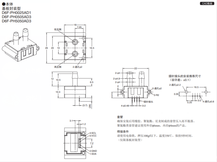 D6F-PH0025AD1 空气 *2 0~250Pa(0~1in. H2O)