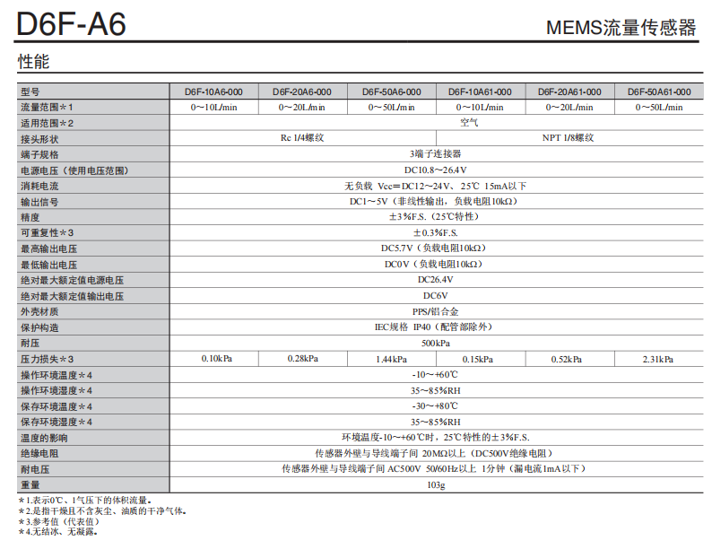 D6F-A7/-N7/-L7燃气流量欧姆龙传感器