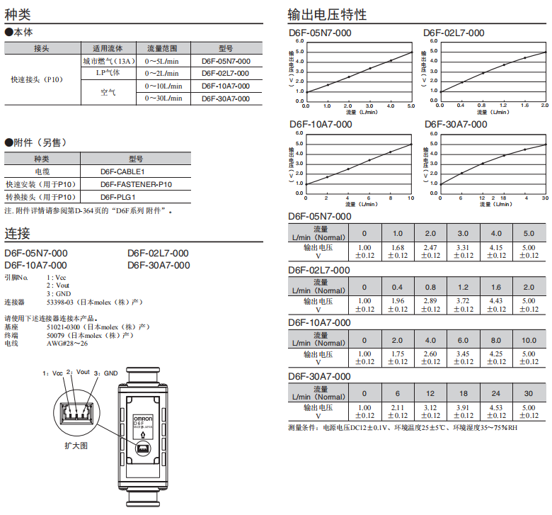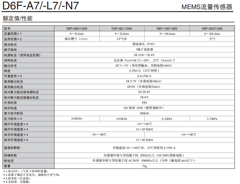 D6F-A7/-N7/-L7燃气流量欧姆龙传感器