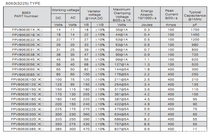 多层片式压敏电阻器 FPV322513E3R3PMT